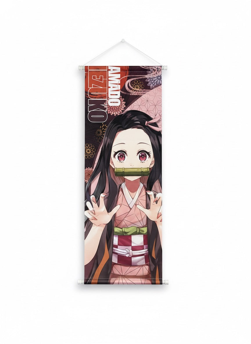 Printed on premium fabric with vibrant, fade-resistant colors and complete with top and bottom hanging rods, this scroll is perfect for bedrooms, anime rooms, or collection displays. A must-have for fans of Nezuko and the Demon Slayer series.
